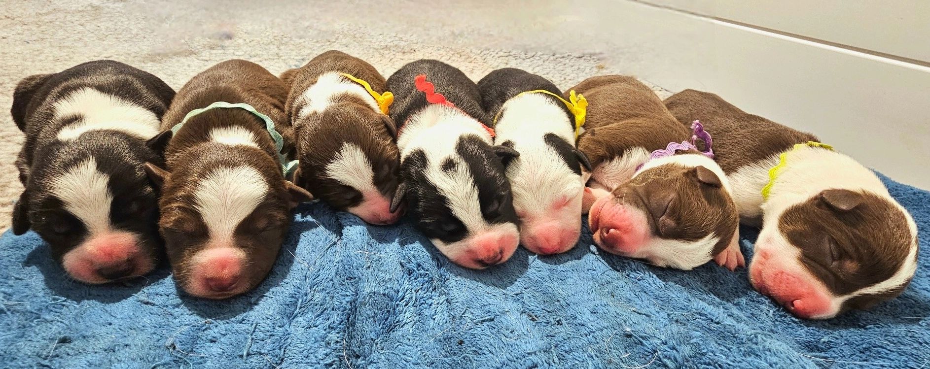 2 red tri, 1 black tri, 2 red and white, 2 black and white